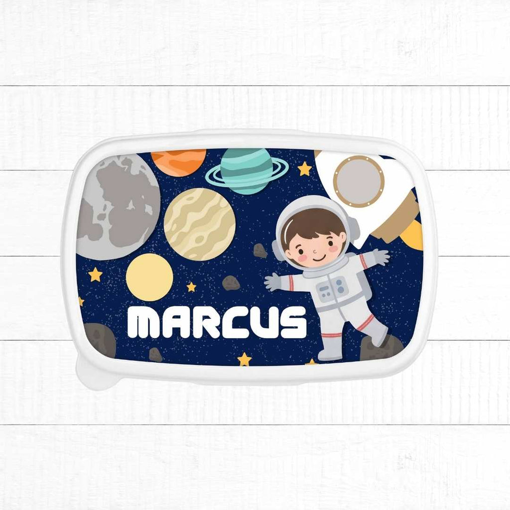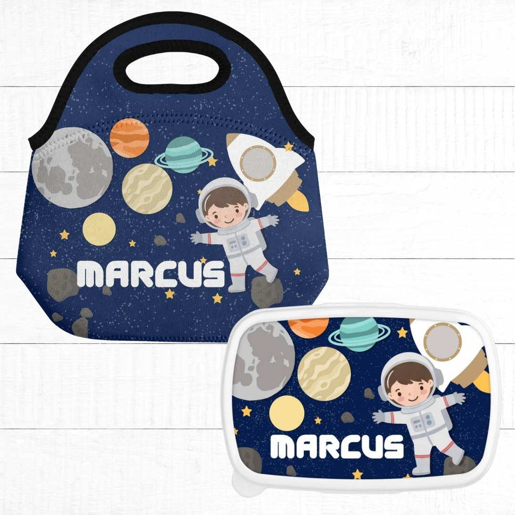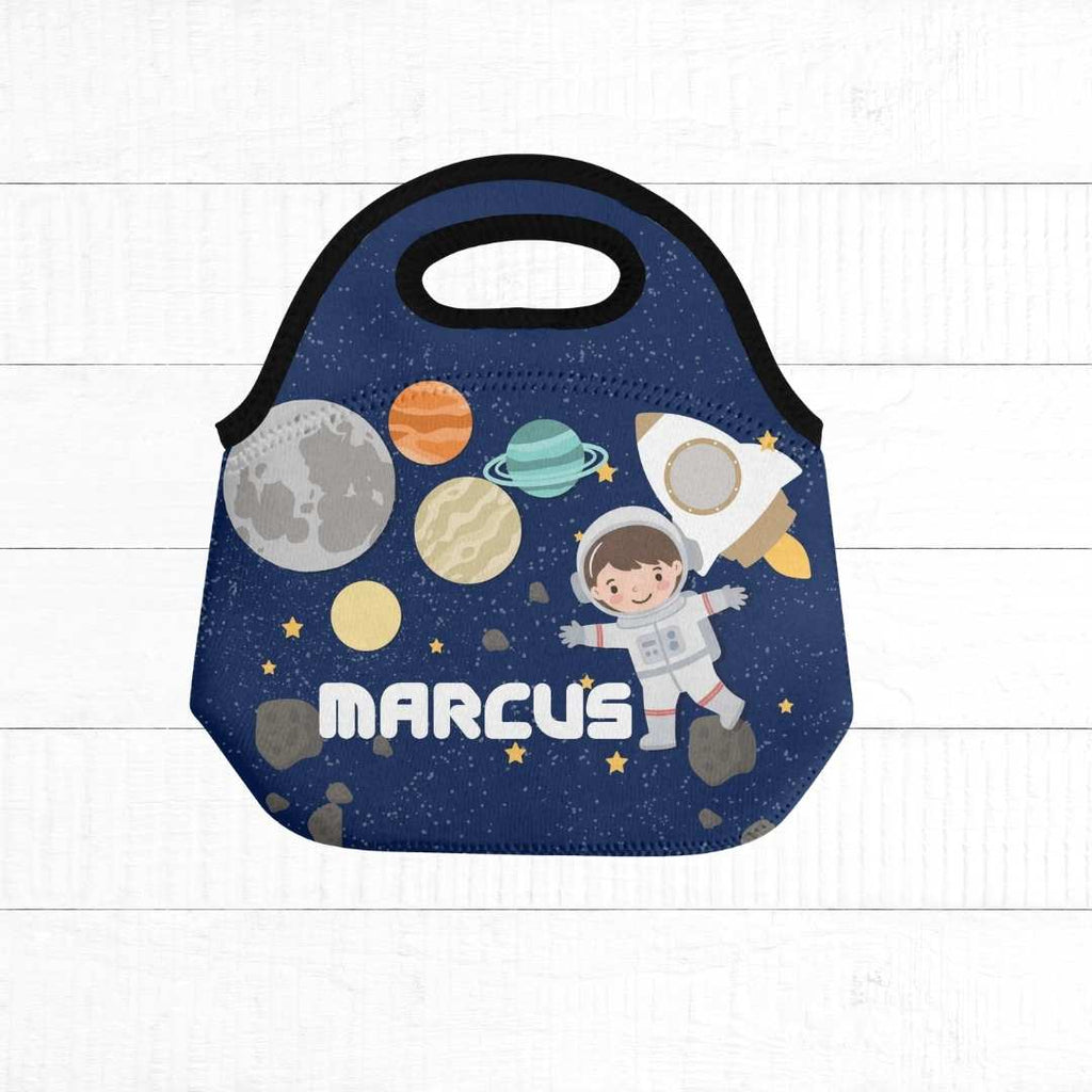 Featuring a bold male astronaut zooming through planets and stars, this personalized lunch box brings the galaxy closer to home. It’s designed for curious minds and big appetites, with enough space for lunch essentials and a special touch—your child’s name right on the front.